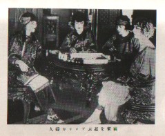 ↓これは当時のアメリカでの女性対局風景。みんなチャイナドレスを着て、家具も中国調。中国ムードを満喫している。というわけで麻雀古書としては貴重な1冊。