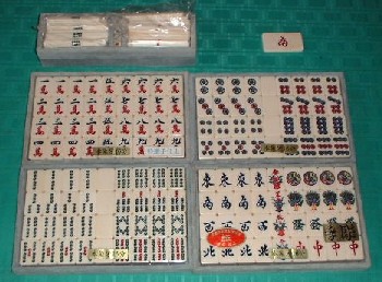 象牙とか牛骨牌の厚さは「分(ふん)」という単位で表す。1分は0.8mmであるから、15分でちょうど12mm。象牙部分のみの厚さで「15分」とあれば正15分という。正15分で高級象牙牌、しかしこの牌は正16分(12.8mm)もある最高級象牙牌。牌の裏打ちの竹もすべて正目(まさめ)という逸品。