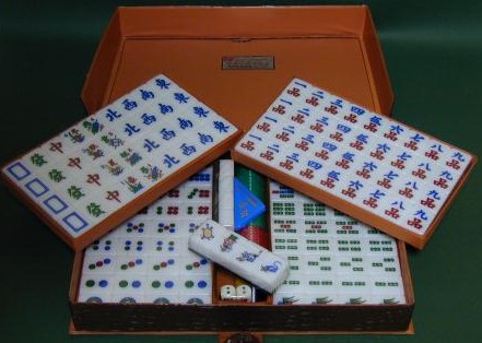 これは香港で購入した牌であるが、いま云ったように合成樹脂牌。しかし福建牌には約束、つまり「こうなっていること」というポイントがある。もちろん万子が品子であることは最重要。