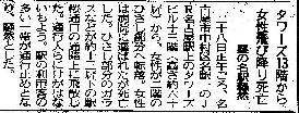 その頃になって周りの人の話しから、駅ビルの上の階から若い女性が飛び降り自殺したらしいという事が分かった。その女性をガラス屋根から下へおろすために、ハシゴ車が必要だったらしい。