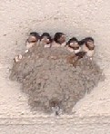 だいたいツバメは5個の卵を産む。うまくゆけば5羽巣立つ。しかしどうしても1羽くらい、生存競争に負けて、エサをもらいそこなうヒナがいる。そこで5羽育つのは、けっこう大変。しかし去年はすくすく成長。5羽とも無事に巣立った。