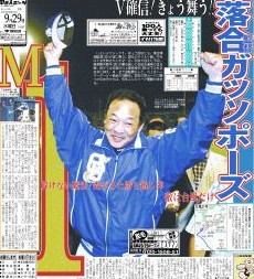 中日はリーグ優勝は何回もしている。しかし日本シリーズの優勝は、フォークの杉下を擁した昭和29年だけ。今年優勝すれば半世紀ぶりの出来事。落合監督の株がウナギ登りするのは間違いないが、女房なんぞは神棚に落合監督の写真を飾る準備をしている。