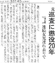 わいせつ目的で女児つれさり事件を起こした元巡査に懲役20年の判決がなされた。もちろんとんでもないヤローなので、懲役20年でも軽すぎるくらい。