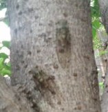 σ(-_-)も田舎市に住んでいるので、たまに庭先でつくつく法師の声を聴くことがある。しかしこんな大合唱は聞いたことがない。1匹ぐらい実物をみたいと思い、木を見上げながら公園のあちこちを歩いた。すると公園の中の街路灯のそばの地面に、数匹が転がっているのを見つけた。