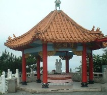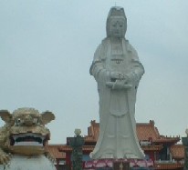 雰囲気は公園というより仏教寺院のよう。じっさい入り口をくぐると、境内の中央には高さ20mか30mくらいの大きな観音様が鎮座、その両脇には これまた大きなコンクリート製の狛犬。仏教寺院のよう