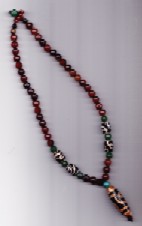 なんとまぁ、売値 5万円だと!(゚0゚) わざわざ輸入して売る手間があるとしても、千円と5万円では値が違いすぎる。ビックリしたので飾ってある首飾りを取り出し、しげしげ眺めてみた。すると買ってきた首飾りには、一部が欠けた石があった。