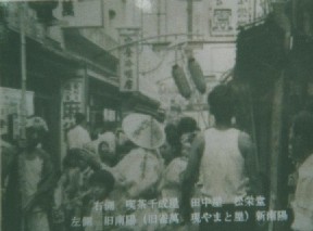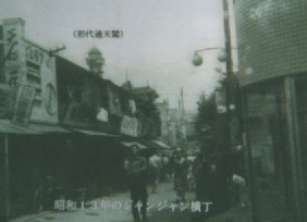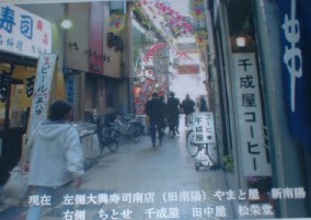 昭和30年ころのじゃんじゃん横丁。左側に見える「麻雀」店は雀満(南陽)