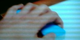 が、平積みでは 親指と中指で両サイドを挟み込むようにする。