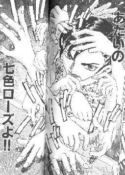 携帯電話を使ったり、雀荘の中をインコが飛び廻ったり、変わった手がいろいろ登場している。そんなかでも最大傑作と思うのが七色ローズ。
