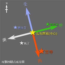 東が竜泉寺(りゅうせんじ)、西が荒子観音(あらこかんのん)、南が笠寺(かさでら)、北が甚目寺(じもくじ)。そして名古屋城から笠寺方向に行った所には恵方町という町もある。そこでσ(-_-)たちが学生の頃は、高めがでると“ロン、恵方町!”ともやってた。しかしこんな表現も、いまは廃れてしまった。別に廃れたって構わないけど、いまでも恵方町の近くを通りかかると学生時代を思い出す。