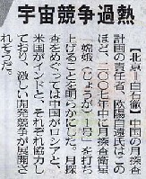 06.6.25の中日新聞に、中国の月探査衛星打ち上げ計画のニュースが報じられていた。