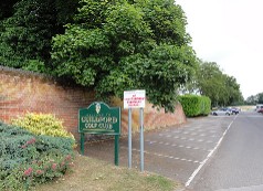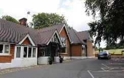 ゴルフ場の外の風景と、麻雀が行われたクラブハウス