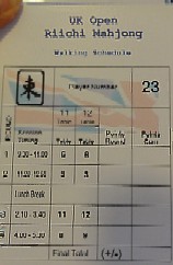 大会の名称は 2010 Riichi Mahjong UK Open 、場所はギルドフォードゴルフクラブ。リーチ麻雀大会という以上、基本的に一般リーチルール。ただし食いタンなし、食い換えアリ(ヨーロッパ麻雀協会(EMA)のリーチルール)。