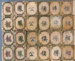 この龍鳳牌にも風牌は存在しないが、見たとおり公侯相将という字牌が存在する。昇官牌と龍鳳牌の関連は判然としないが、両者に公侯伯子男・公侯相将、また漁樵耕読という花牌が存在することは、両者の関連を強く示唆している。さらに日本麻雀草創期の先人、中村徳三郎の表した「麻雀競技法(T13.10.20、千山閣書房刊)」には、花牌32種を擁する牌セットが掲載されており、このセットにも公侯相将という花牌が存在する。